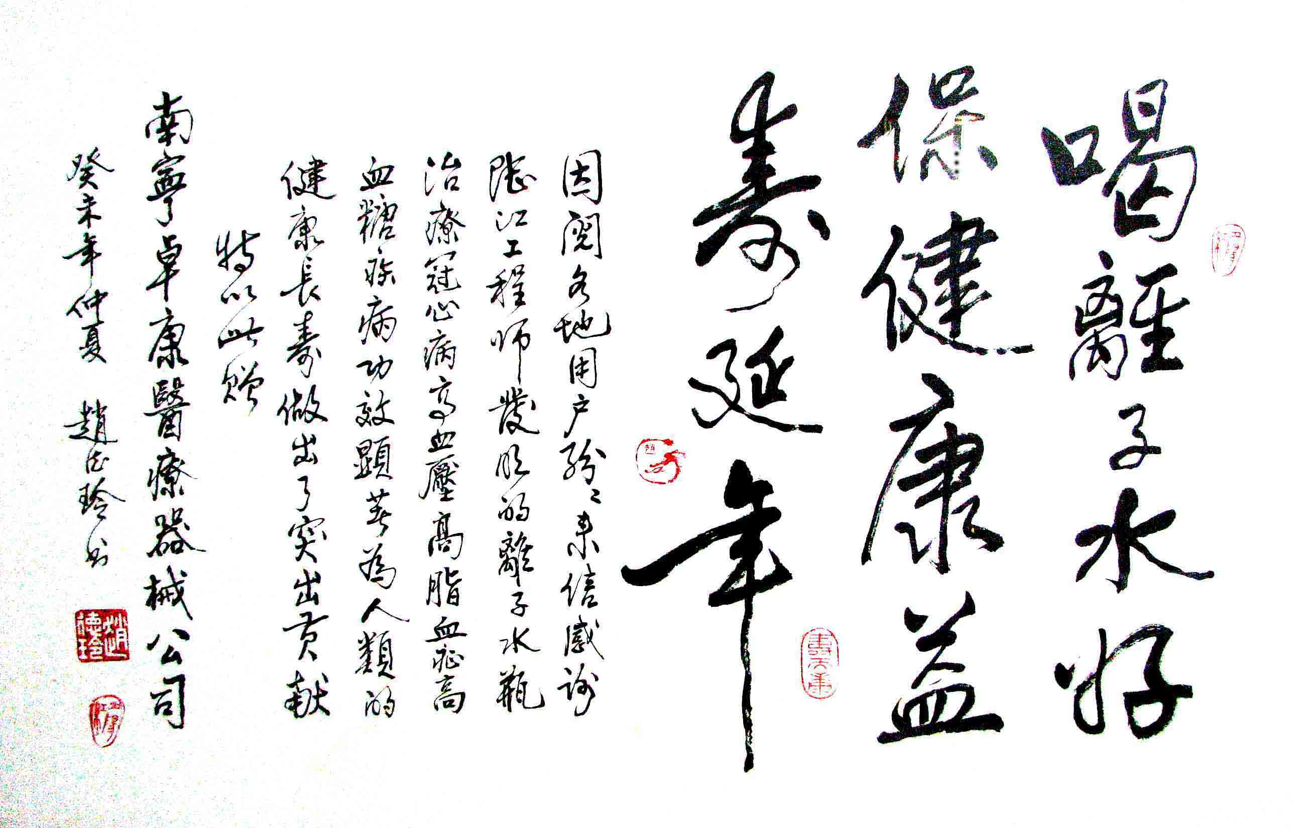 -----我是從事建筑的高工,本來沒有資格去攻克醫(yī)學(xué)難題,卻為了自身健康才扣響醫(yī)學(xué)的大門。由于我1990年患高血壓,因怕中風(fēng)才研究發(fā)明了離子水瓶,我把水處理成微小分子團水,飲用后治愈了高血壓。便于1993年底送到三家省級醫(yī)院做臨床試用4個月。經(jīng)北京和廣西醫(yī)學(xué)專家鑒定:"降脂降壓效果好"," 能擴大心腦動脈流量,改善心腦電圖以及微循環(huán)","對治療心腦動脈粥樣硬化、高血壓、高血脂有良好的醫(yī)療保健作用。""產(chǎn)品的技術(shù)性能和療效達到了同類產(chǎn)品的國內(nèi)領(lǐng)先水平,經(jīng)廣西醫(yī)學(xué)科學(xué)情報研究所檢索,未見國外有類似報道。"中國醫(yī)學(xué)科學(xué)院張正國教授從美國國立醫(yī)學(xué)圖書館數(shù)據(jù)庫存Medline檢索英俄文資料,均未見類似報告。2000年上市后,我為了對消費者負責(zé)而繼續(xù)觀察研究,一直通過《信譽卡》和《質(zhì)量跟蹤調(diào)查書》向患者承諾療效,請用戶使用6個月后反饋效果。和脂壓患者飲用2至5個月內(nèi),消除癥狀,停服藥物,血壓正常;冠心病患者飲用3~5個月逐漸減輕至消除心絞痛、房顫等癥狀,不再服藥,飲用1年左右心電圖正常,經(jīng)冠脈造影掃描無明顯狹窄,表明冠心病痊愈。大量患者還反映許多衰弱器官被修復(fù),讓前列腺增生、慢性咽喉炎、慢性氣管炎、支氣管炎、慢性胃炎、腸炎和膽囊炎等不藥而愈;2型糖尿病患者是因為胰島衰弱致病,飲用該水半年至一年,逐漸減藥至停藥,血糖尿糖正常,真正治愈2型糖尿病。中風(fēng)后遺癥患者飲用六七個月,可逐漸減輕至消除肢體和語言障礙,表明飲用該水能讓壽命很長的神經(jīng)元細胞逐漸修復(fù),奇跡般地恢復(fù)肢體和語言功能。飲用后還使胸腺和脾臟兩個重要的免疫器官被修復(fù)和增強,產(chǎn)生免疫細胞多,提高了免疫力,使人不生病或少生病。自此, 飲用微小分子團水創(chuàng)造了攻克冠心病、高(低)血壓和糖尿病三大醫(yī)學(xué)難題的奇跡。人們對此感到不可思議,但實踐是檢驗真理的唯一標(biāo)準(zhǔn)。